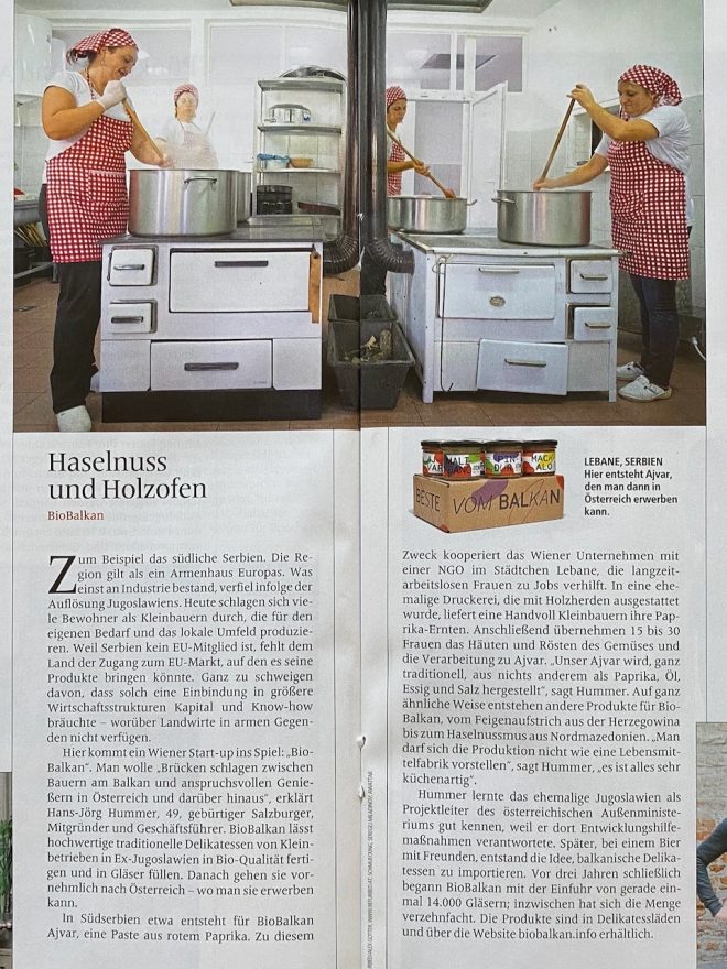 Das österreichische Nachrichtenmagazin profil hat BioBalkan auf seinen Wirtschafts-Seiten portraitiert. Mit dem Titel „Das geht doch besser“ stellen die Autoren Jungunternehmen vor, die die „Welt ein Stück besser machen“, beziehungsweise „gerechter, sozialer und ökologischer“.