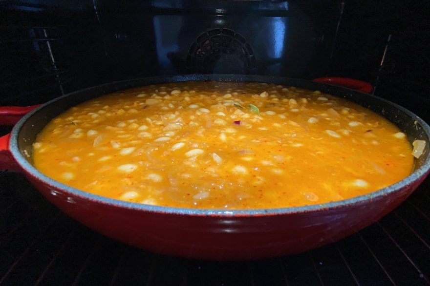 „Pasulj prebranac“ ist die serbische Variante eines Klassikers der Balkan-Küche, Gebackene Bohnen, in Nordmazedonien auch bekannt als „gravče na tavče“. Prebranac ist eine in ganz Südosteuropa beliebte Haupt- und Zuspeise und wird, weil vegan, gerne zu Fastenzeiten kredenzt. Aus wenigen Elementen – Bohnen, Zwiebel, Öl und Paprika – zaubert man mit etwas Geduld ein besonders herzhaftes Gericht.