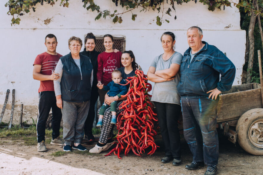 Die schwere Feldarbeit, von der Aussaat bis zur Ernte, überlässt Stanka den jüngeren Generationen. Wenn es aber daran geht, im Herbst die langen Šiljača-Paprikaschoten zwecks Trocknung aufzufädeln, sind ihre geübten Hände immer noch gefragt. Auf 70 Ar erntet die Familie jährlich zehn Tonnen Paprika, vier Tonnen Tomaten und zwei Tonnen anderes Bio-Gemüse. Das reicht natürlich nicht aus, um alle neun Mitglieder zu ernähren, weshalb die die dritte Generation Nebenerwerben nachgeht. Enkeltochter Milica etwa war einige Zeit bei Radanska Ruža auch in der Verarbeitung des eigenen Gemüses beschäftigt, übrigens unter der Leitung von Stankas Tochter Dobrica. Ohne die Jovići und ihre Hartnäckigkeit, die mehrfach auf die Probe gestellt wurde, gäbe es heute BioBalkan nicht.