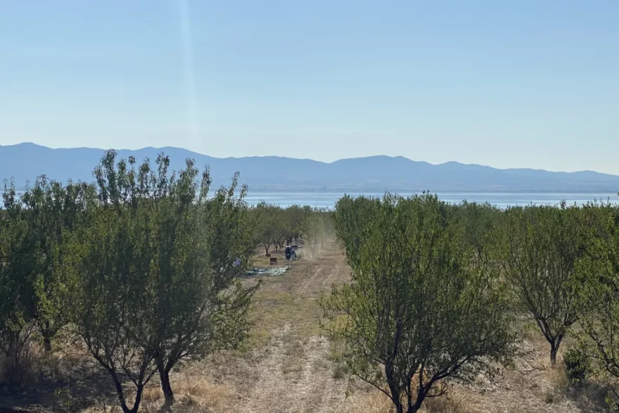 Zum ersten Mal auf Besuch am Dojransee, im Südosten Nordmazedoniens, waren wir im Oktober 2016. Der See liegt entlang der Grenze zwischen der ehemaligen jugoslawischen Republik und Griechenland und nicht einmal 80 Kilometer von Thessaloniki und dem Ägäischen Meer entfernt. Das Klima ist mediterran, mit hohen 3.200 Sonnenstunden im Jahr, und somit ideal für den Anbau von Kulturen, die es warm und sonnig mögen. Unser Besuch vor fast acht Jahren galt Dimče Baleski, der 2003 am Ufer des Dojransees eine Pflanzung von Mandeln und Kakis angelegt hatte. Damit hatte er im doppelten Sinn Pionierarbeit geleistet: Zum einen war er einer der ersten, der die alte Tradition des Anbaus von Mandeln in Mazedonien wiederbelebte – zum anderen waren seine Haine von Anfang an bio-zertifiziert.