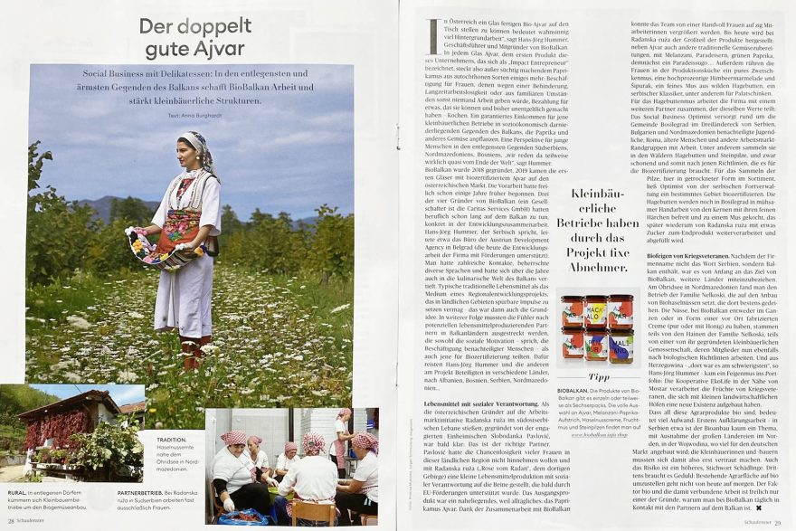 Die erste April-Ausgabe 2022 des Schaufensters der Tageszeitung Presse widmet unserer Arbeit gleich eine Doppelseite – mit einem wunderbaren Text von Anna Burghardt mit dem Titel: Der doppelt gute Ajvar.