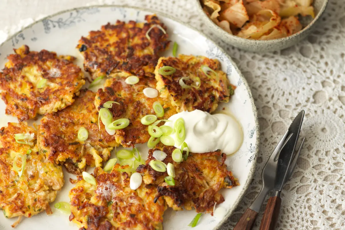 Der Rösti ist eine Schweizer Legende – knusprig, buttrig, unwiderstehlich. Aber was passiert, wenn man ihm ein bisschen Balkan-Seele einhaucht? Dann kommt unser Kupus ins Spiel: das traditionelle serbische Sauerkraut, bei uns aus rosa Kraut, das im Holzfass vergoren wird, und mit seiner herzhaften Säure den klassischen Kartoffelrösti in etwas ganz Eigenes verwandelt. Außen goldbraun und kross, innen weich und würzig – und dazu ein kühler Kleckser Sauerrahm mit Zitronenabrieb. Zwei Traditionen, eine Pfanne, ein großes Ergebnis!