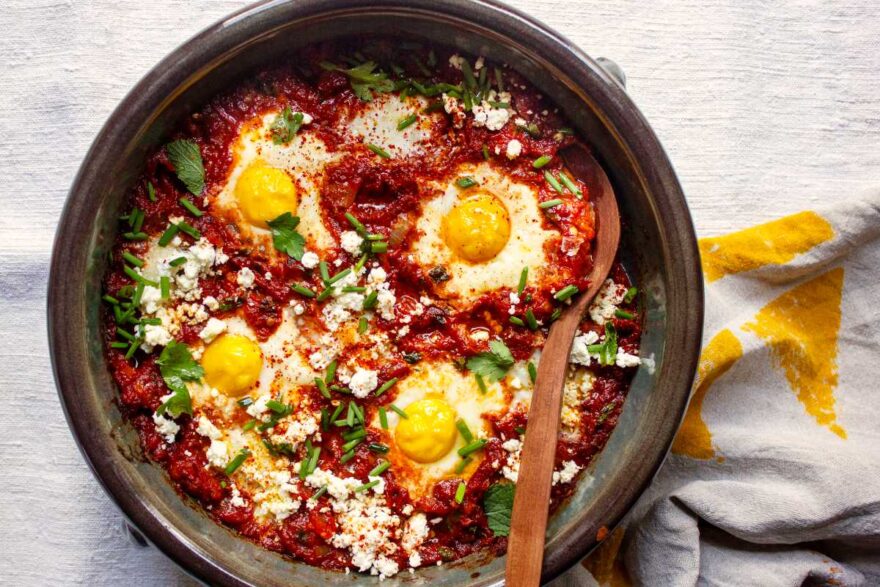 Shakshuka ist ein aus aus Nordafrika, wohl Tunesien, stammendes Schmorgericht und hat in nur wenigen Jahren die Frühstücks- und Brunchlokale von Tel Aviv bis Berlin erobert. Die Kombination aus pikantem Gemüse und levantinischen Aromen, gekrönt mit Eiern und frischen Kräutern, schmeckt einfach unwiderstehlich.